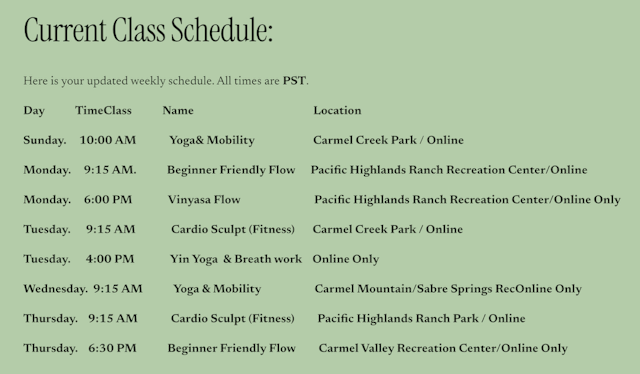 CLASS SCHEDULE